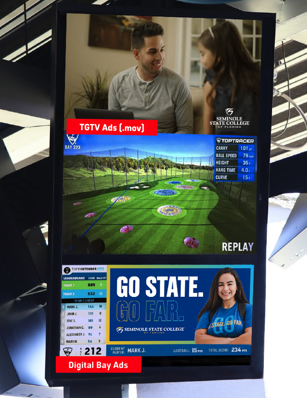 Digital campaign throughout the Topgolf, Lake Mary, Fla. facility with in-venue ad placement on TGTVs, display bay, and LED digital posters. Media buy included a guaranteed 2M rotations with over 3.5M viewed impressions of audience aged 18-34 with an annual HHI greater than $70K.